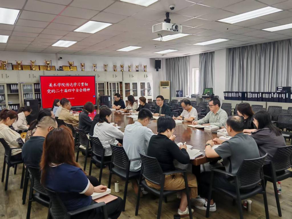 10月31日,美术学院召开党委(扩大)会议,专题传达学习习近平总书记在党的二十届四中全会上的重要讲话和全会精神,研读了学校《关于认真学习宣传贯彻党的二十届四中全会精神的通知》并进行动员部署。学院党委委员、班子成员、党支部书记、系(中心、馆)及专业负责人、政工干部和教师代表参加会议。