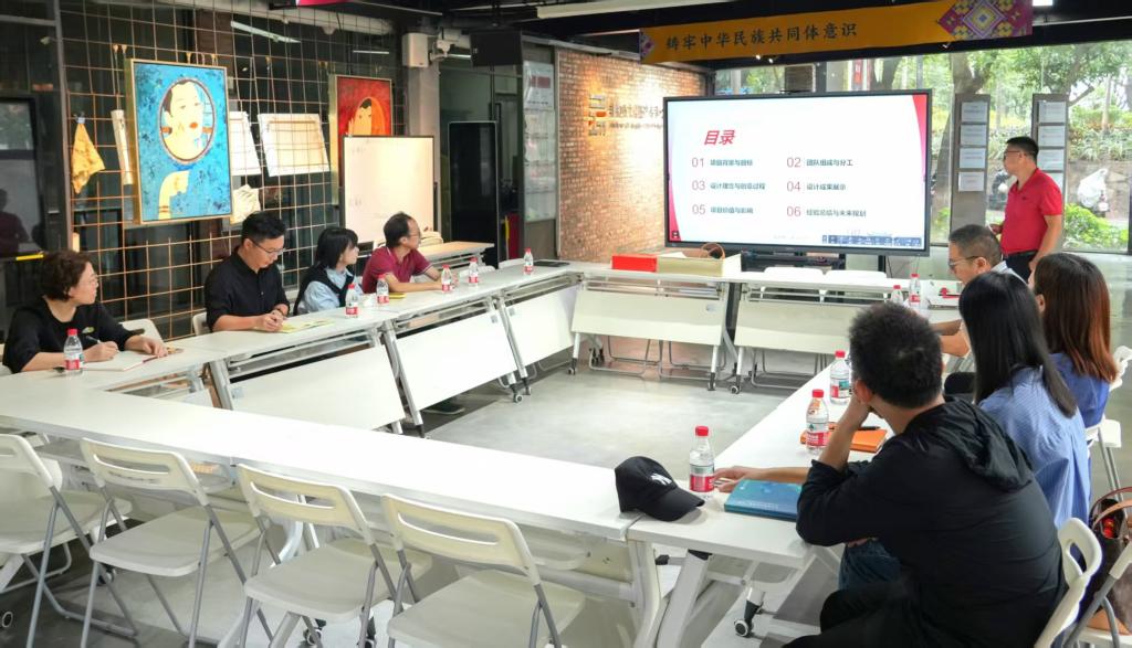 刘兴老师就项目实施过程作专题汇报。在交流研讨环节,与会教师围绕课程融合、校企协同、市场转化等议题展开深入讨论,一致认为应坚持文化内涵与实际需求双轮驱动,打造兼具艺术性与实用性的文创产品。