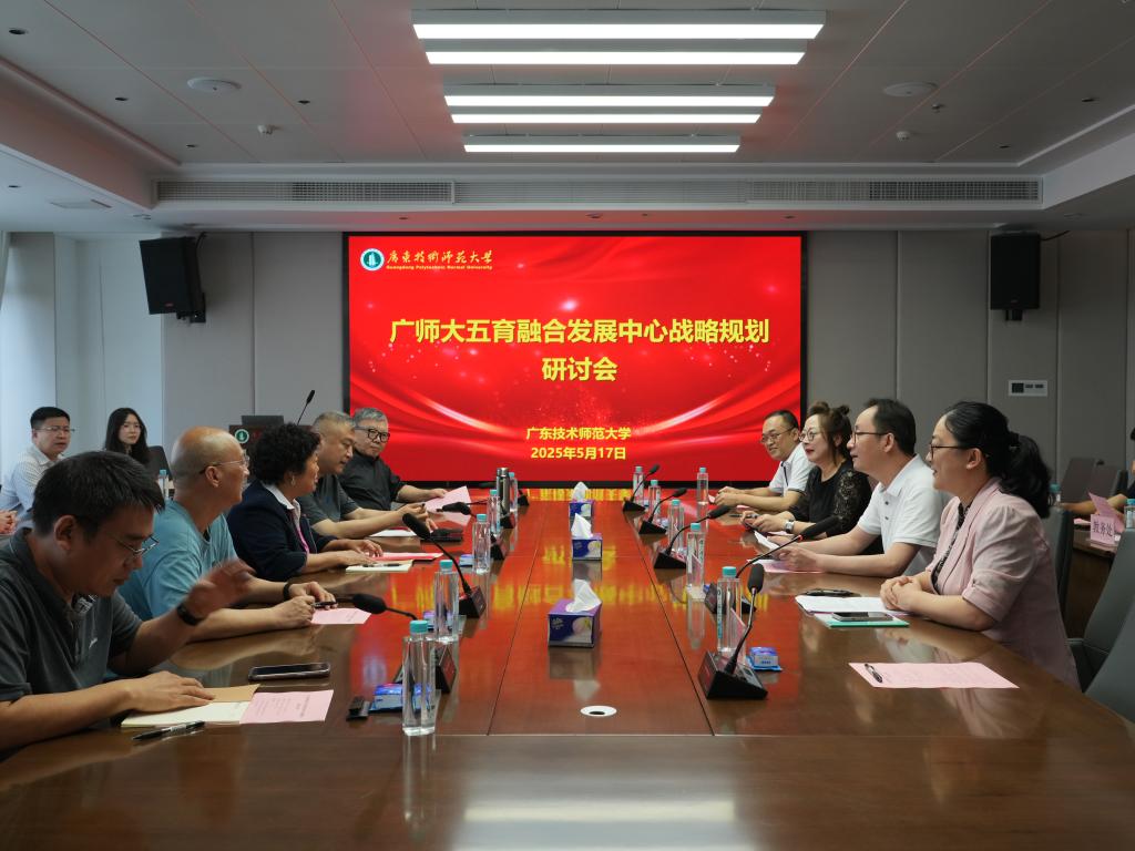 5月17日,我校在东校区工业中心801室召开五育融合发展中心战略规划研讨会。国家非物质文化遗产展览展示研究中心(华南展示基地)专家委员会副主任委员、广东省文化和旅游厅原副厅长、一级巡视员陈杭,中国非物质文化遗产研究院学术院长、中国传统工艺振兴计划协同创新中心主任孙冬宁,广州体育学院武术学院博士生导师、国家级非遗专家组成员李朝旭,中国工艺美术学会非物质文化遗产工作委员会副主任陈希,广东省非遗保护中心(省非遗馆)办公室副主任、副研究员谢德明,学校党委常委、副校长孙燕青出席会议。我校教务处等相关职能部门人员、学院代表参加会议。